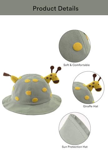 SYGA Unisex Baby Cotton Bucket Sun Hat For Sun Protection Cap Fishermans Hats Spring Cute Baby Cartoon Giraffe Cap For 6 Months – 3 Years Children (Green)
