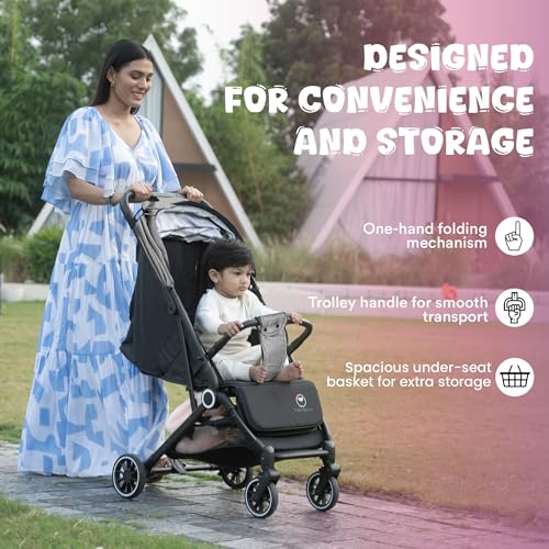 Tinyberg Baby Stroller for 0-5 Years | Featherlite Lightweight, Cabin-Friendly, Portable Stroller for Travel, One-Hand Fold, 5-Point Safety Harness, Multi Recline, Shock Absorbers|Up to 25Kg (Grey)
