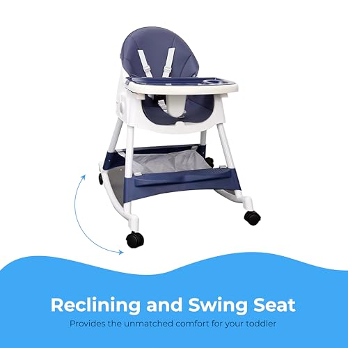 TONY STARK 5 In 1 Latest 2024 Model, Reclining Baby High Chair Foldable, Easy To Clean For Baby, Kids, Toddler (Dark Navy Blue Color With Rocking Attachment)