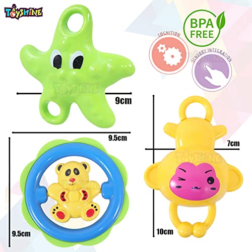 Toyshine Pack of 3 Rattle Set with Teathers for New Born Babies, Toy for Babies, Non-Toxic (Model B)