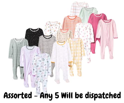 5 Zipper Closure Sleepsuits. Assorted Colors / Prints will be dispatched.