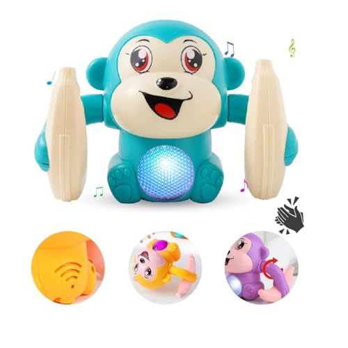 V R ENTERPRISEDancing Monkey Musical Toy for Kids Baby Spinning Rolling Doll Tumble Toy with Voice Control Musical Light and Sound Effects with Sensor – ISI Mark – Multicolor