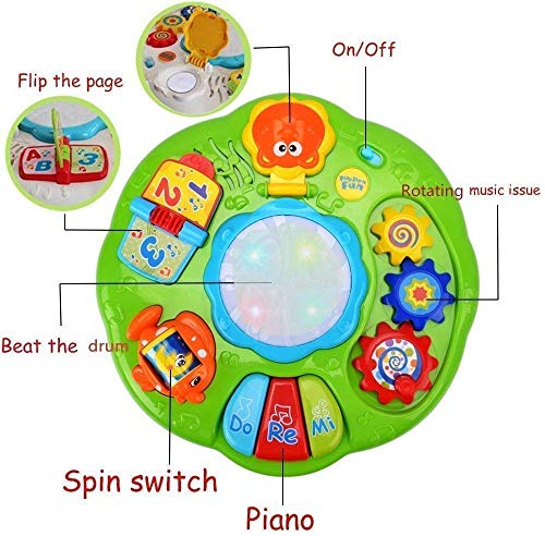 【Music &Light】 This musical learning table can flash soft lights and play classic. Baby can explores sounds, songs and instruments such as the piano and drum.