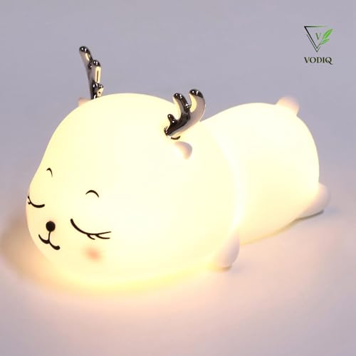 VODIQ LED Deer Nursery Night Lights for Kids, Cute Animal Silicone Baby Night Light with Touch Sensor, USB Rechargeable Baby Girl Boys Gifts, Xmas Gifts for Toddler Kids