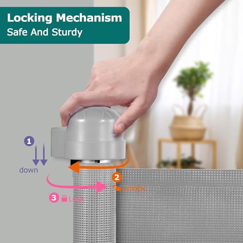 【Structure for Safety Use】 Retractable Gate featured with double locking mechanism works as both an infant gate and a pet gate to keep mischief contained by providing a safe, closed off environment to play.The strong, soft mesh to prevent kid and dog from any hurt when they accidentally bumped into the door. All gate lines are tested to the safety standards, meeting or exceeding EN standards.
