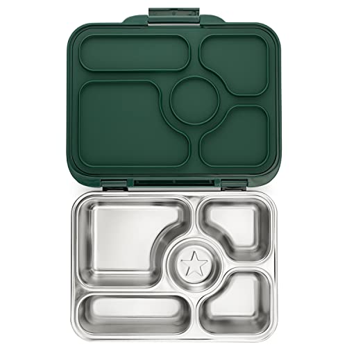 Yumbox Presto Stainless Steel Bento Box | 5 Compartment Leakproof Lunch Box For Kids & Adults, Lightweight & Compact | Premium Durable Materials | BPA-Free, Food-Safe | 900ML – Kale Green