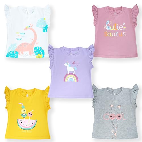 YUV Baby Girls 100% Cotton Half Sleeve Printed Regular Fit T-Shirt (Pack Of 5) – 9 To 12 Months, White