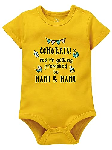 Zeezeezoo Baby Announcement Theme Baby Romper Bodysuit Onesie Dress Sleepsuit Congrats Promoted to Nana & Nani (0-3 Months, Yellow)
