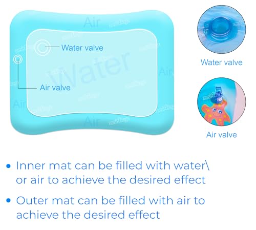 💧 EASY SETUP & SAFE MATERIALS: Crafted from safe materials, this baby water play mat is leak-proof, durable, and baby-safe. Setup is simple: fill the inner section with water and the outer edges with air. Let your baby enjoy tummy time play with full peace of mind in a safe environment!
