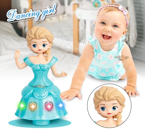Zest 4 Toyz Musical Toys for Kids Dancing Doll Princess 360 Rotating Light & Sound Toy Bump and Go Action for 1 Year Old Baby Boys & Girls (Pack of 1) Random Colors