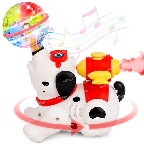 Musical Toys For Kids Dancing Dog Toy 360 Degree Rotating Light & Sound Toy with Bump and Go action For 1 Year Old Baby Boys & Girls with water mist spray function.