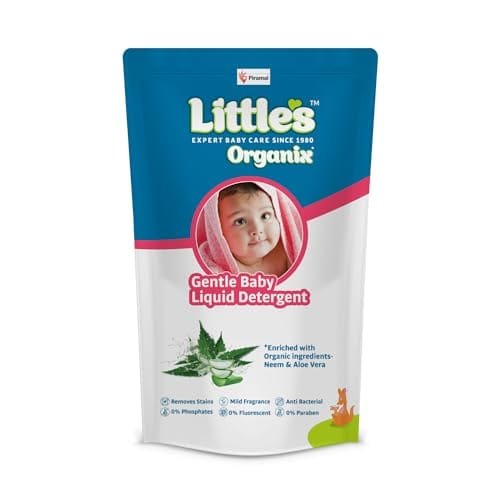 Little’s Organix Gentle Baby Detergent Liquid for Clothes | 1000 ml x Refill | Anti-Bacterial Liquid Detergent for Baby Clothes Enriched with Aloe Vera & Neem Extracts | Free from Brighteners & Bleach