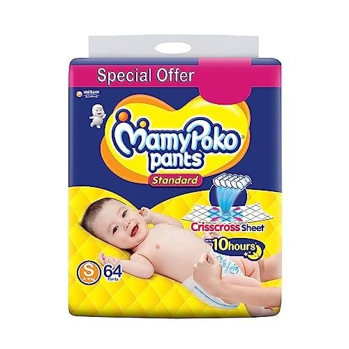 MamyPoko Pants Standard Baby Diapers, Small (S), 64 Count, 4-8kg