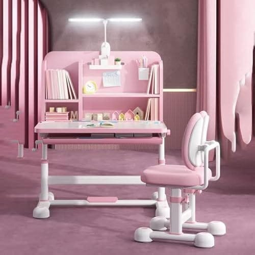 Price: [price_with_discount](as of [price_update_date] – Details) [ad_1] 【Kids study table with chair】-Material -MDF board with plastic chair and steel pipe for Strong durability .Table Size :h: 78-56cm l: 80cm, w: 48cm. This Kids Table and Chair with Book Holder ,Pen…