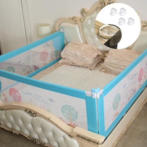 SYGA Pack of 3 Bed Rail Guard, Portable Safety Guardrail for King/Queen Size Bed – (1.8 Meter_Cream)
