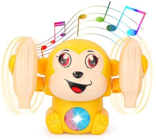 Zest 4 Toyz Dancing Monkey Musical Toy for Kids Baby Spinning Rolling Doll Tumble Toy with Voice Control Sensor Light and Music Rotating Arm Sound Toy – Made in India (Random Color Dispatch)