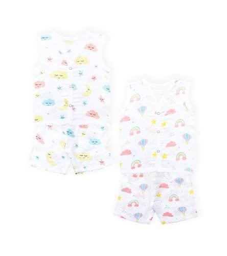 Baby Boy and Baby Girl’s Cartoon Print Sleevelees Soft Cotton Casual Vest Jhabla T-Shirt with Shorts Dress for Summer Wear Kids Infant Toddler New Born Baby Clothes (Set of 6) (6-12 Months)