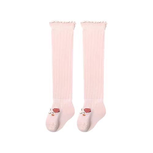 SYGA 2 Pair Baby Long Socks Cotton, Over the Knee, No Tightness, High-Top, Cute Design – L Size, Suitable for 1-3 years old (Pink & Grey)