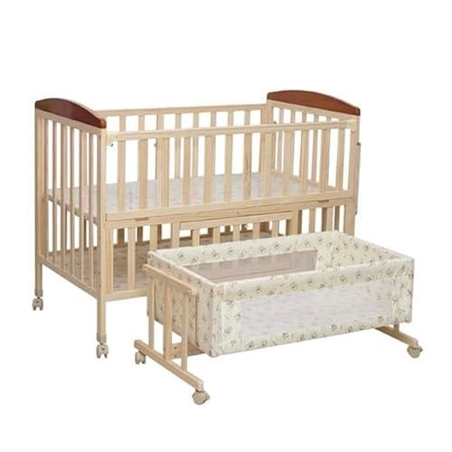 Mee Mee Wooden Baby Cot with Mosquito Net for 0-3 Years | Toddler Bed, Cradle, Rocker | Bedside Bed, Height Adjustable, Convertible Crib in Swing Mode with Large Storage Space for Toys (Wooden Cream)