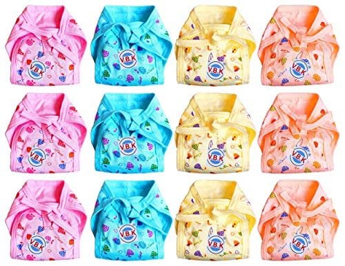 V.B.K Baby Boy and Baby Girl Cloth Set Combo Pack Of Jhabla (6 Pcs), Nappy (Langot) (12 Piece), Mitten-Booties(4 Pair), Pure Cotton and Hosiery Soft Fabric, 0 to 6 Months, Multicolor, Random Prints