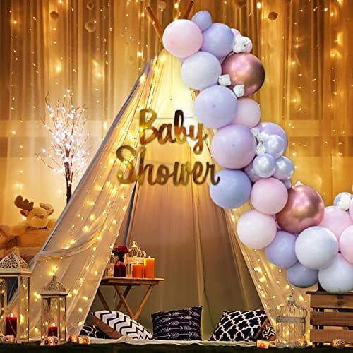 Party Propz Baby Shower Decoration Items – Set of 26 Pcs | Mom To Be Decoration | White Net Curtain With Fairy Lights | Baby Shower Party Decoration | Pastel Balloons For Baby Shower Decorations