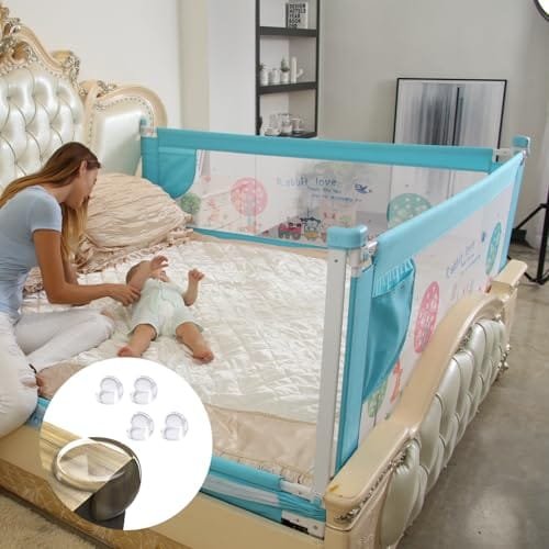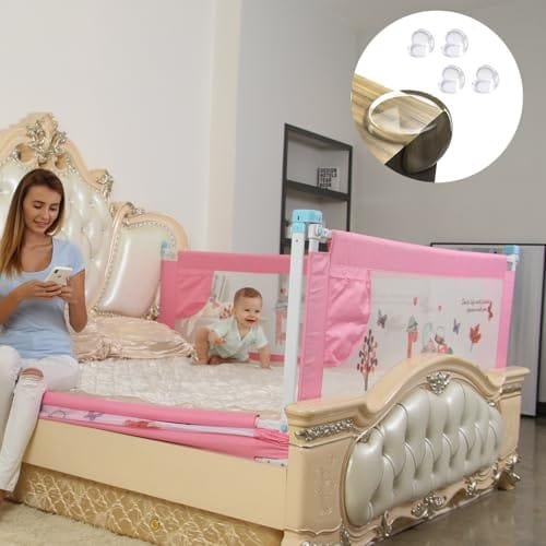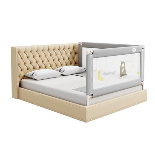 SYGA Pack of 2 Bed Rail Guard, Portable Safety Guardrail for King/Queen Size Bed – 88cm Tall_(1.5m, 2m_Cream)