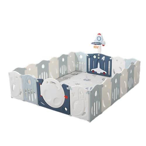 BabyLiv 52SQFT 20 Panel Playpen with Ultra Soft Mat and Basketball, Kids Activity Centre Safe & Spacious Play Yard for Home Indoor Outdoor, Ball Pool Area for Toddlers (Grey & White). ISO 9001:2015 CERTIFIED, CE CERTIFIED (7.87*6.56 FT=52SQFT).